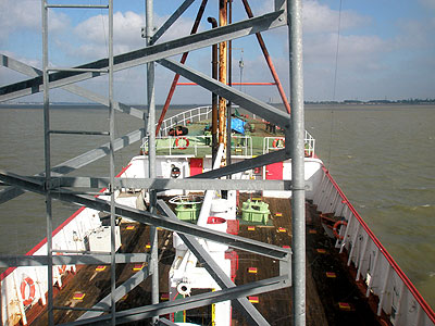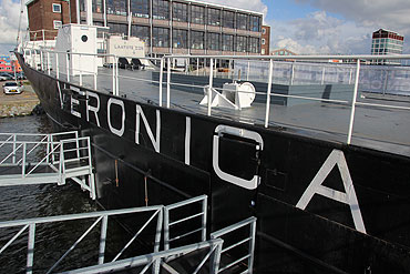 Onboard the Ross Revenge "I had wanted to visit the Ross once again for a long time and since they have now obtained suitable Comprehensive Insurance, they have started running trips which allow people to go on board. We went out with Albert Hood and Bill Rollins, plus the skipper of Razorbill 3, Stuart Belbin. Both Albert and Georgina Hood have dedicated their lives to helping Radio Caroline on both the Mi Amigo and Ross Revenge; they are amazing! |