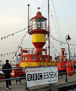 Mark West (aka Wesley) very kindly supplied the photos below of the Radio Essex contingent and their guests. Mark was only 17 years old when he began broadcasting on Radio Essex. He says: "I was too nervous to think in terms of responsibility. There was a sort of record deck and a Vox ribbon mic set up in the transmitter/engineers' room, very chaotic. I'd written down a few statements like "This is Radio Essex, the voice of Essex from the mouth of the River Thames and this is a test transmission" (Which I thought was quite clever) uttered with shaking hand and trembling voice. As nothing actually changed during these tests I added some additional words to make it sound as though something significant technically was happening. "This is phase one (2 or 3, etc.) of our test transmissions". Brighton band Oddfellows Casino's recent recording 'Oh Sealand', "an unofficial anthem for the independent principality of Sealand" was played during Offshore 50 to honour our Royal guest, Michael of Sealand. We really like it! |