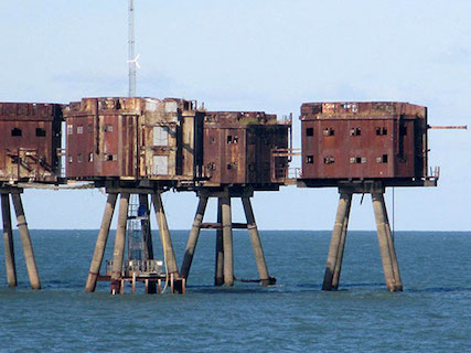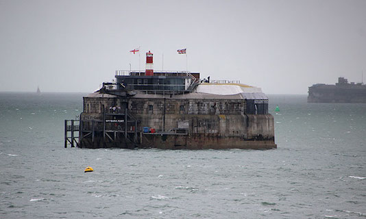 (Far left, Knock John on the horizon) The forts don't seem to change much from year to year and there's no recent news of that luxury hotel development mooted in 2015. This type of conversion has worked well with the 150-year-old Solent Forts, but their solid, round design surely lent itself to conversion better than do the Maunsell Forts. (Below right, Spitbank Fort, a luxury hotel in the Solent) |