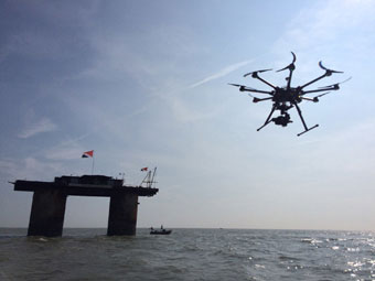 Droning over the Forts (left) Publicity photo. An episode from Series 1 featured drone footage of Sealand. |