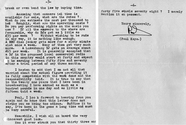 Nick's Visit to Chuck Blair As you rightly recall on your website, Chuck Blair did indeed give his address out on his last Breakfast Show and as a resident of Harpenden I decided with two other friends to see if we could visit him. We sent him a letter and he left a message via phone with my mother that we could visit. His flat was easy to find as he had a Big L 266 sticker on the front door! He was very charming and I think was with a couple of friends, one we presumed was his girlfriend. We really didn't have a lot to say other than we were very sorry that the station had closed and that we had enjoyed listening to his programmes. He was, I learned later, quite involved with one of the local youth clubs. Indeed his 'CV" confirms this. Apart from getting his signature that was the last we saw of him. I have always been impressed that he went to the bother of replying to my letter and inviting us to his home. Although clearly a complex individual as your website describes my memories of our few minutes with him were very positive. Thanks again for the happy memories that I am always reminded of when visiting your website. I have 'We Love the Pirates - Charting the Big L Fab 40' Sanctuary CD from 2005 which includes jingles and 47 Fab 40 Hits – a further happy reminder of my early teenage years." |