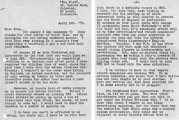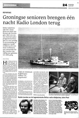 This was of course the famous April Fool’s Day hoax perpetrated by the guys on the Galaxy. I remember reading somewhere that this was not their first idea. There was talk at the time that the original scheme would have also involved the deejays on board the Mi Amigo, who pulled out at the last minute. One could surmise that for that morning 'Radio Caroline' might have been operating on 266 from the Galaxy and 'Radio London' on 259 from the Mi Amigo. It is no wonder that this never happened, as I can imagine management at Caroline House and 17 Curzon Street would have been none too impressed, to say the least!