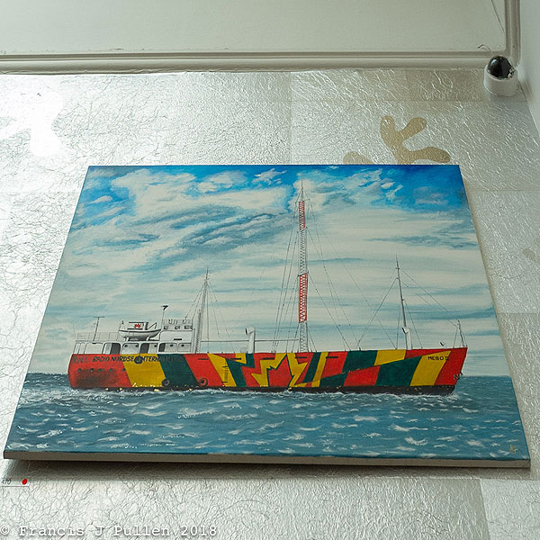 Talking of RNI... Francis Pullen writes: " This acrylic painting of RNI, titled, 'Radiowaves At Sea' (£1,000 and sold) was exhibited at the Royal Academy 250th Summer Exhibition in London which I visited on 4th August. The artist is Jemma Gudgin. |