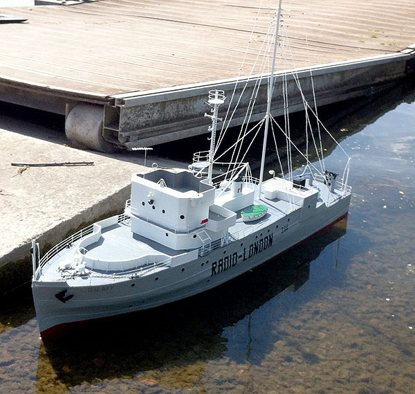 Model Galaxy makes the news David says: "I finished that boat and delivered it to Paul Scripps, a Radio London fan, at Clacton-on-Sea." Keith Skues forwarded a link to the Eastern Daily Press, which carried a 2-page feature about the model. The online version of the story is here, including a Cardboard quote comparing Radio London with Caroline. Mike Barraclough sent a link to four photos of another model of the Galaxy by Hans Hettelder which was shown at the Belgian Radio Day on May 28th. |