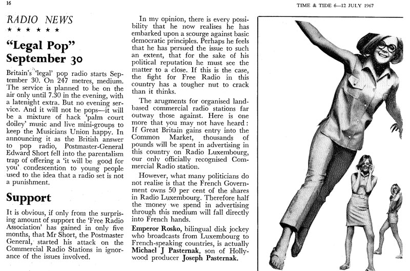 'Legal Pop' and the Common Market We have no idea what the lady on the right is doing, but we very much doubt if she is jumping for joy at the prospect of hearing 'palm court doiley' music and 'live mini-bands' on 247 mediumwave. (Thanks to Hans Knot for the clipping) |