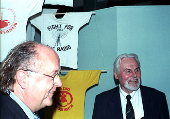 Proposed offshore radio museum for the Netherlands Read Han's full report on the project here Photo (Hans Knot): Willem van Kooten and Bull Verweij (both involved in Veronica in the past) opening a 1994 exhibition |