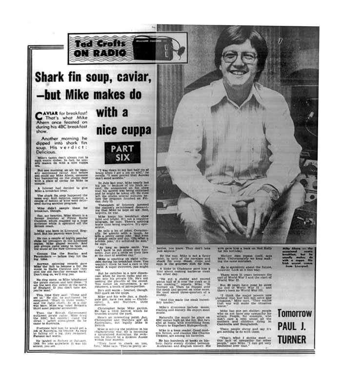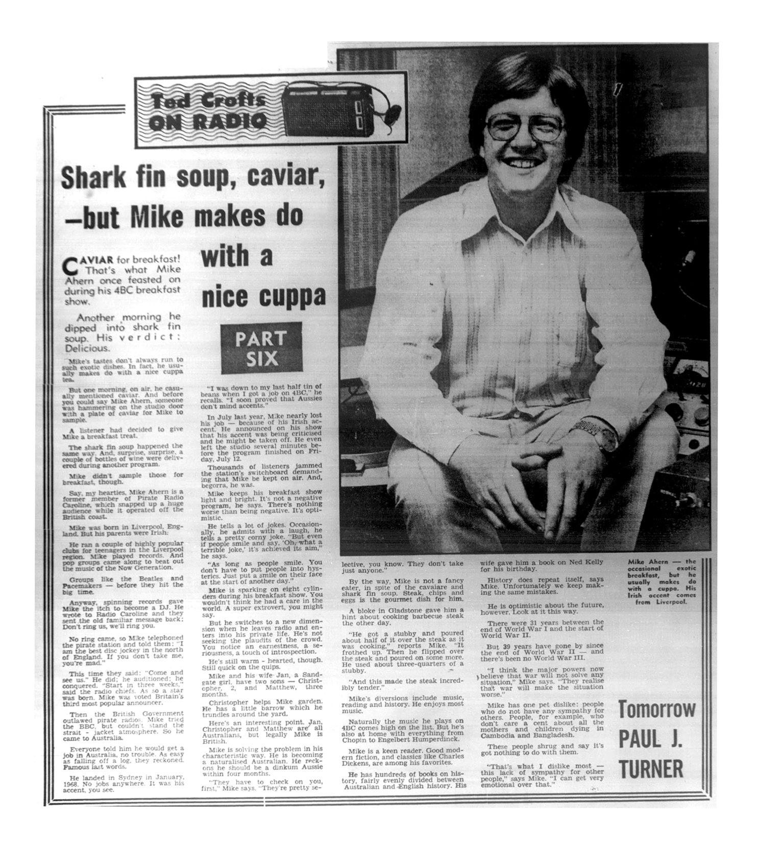Caroline's Mike Ahern was the popular Breakfast Show host on Brisbane's 4BC in the early-to-mid Seventies |