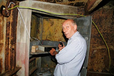 Tony with Ian West on the main 299 transmitter after the post raid test transmission concluded, the Pigion-Blackbird shore-link scheduled for 10.00am