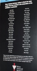 The board listing the many individuals who contributed to Pirates of the Irish Sea |