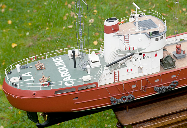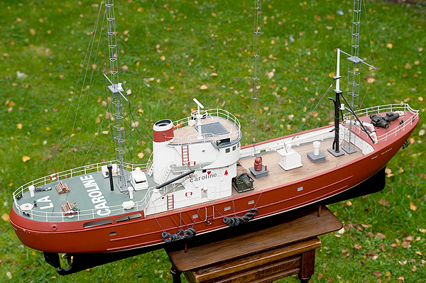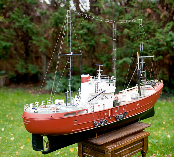 In 2011, John Slinn kindly sent pictures of a beautiful Ross model that he bought from its maker, Stewart Crossley. The ship is fully operational with remote control motor, lights and an AM low powered transmitter. |