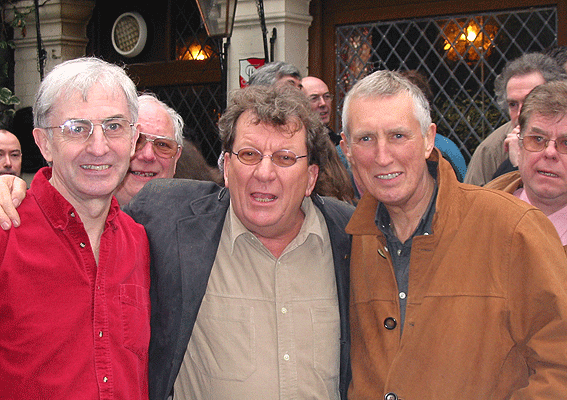 Doggett's Reunion, London 2002. With Caroliners (r to l Johnnie Walker, Mark Sloane and DLT. It was the 35th Anniversary of the MOA and many guests had not met since then. (Photo: Martin Van der Ven) |