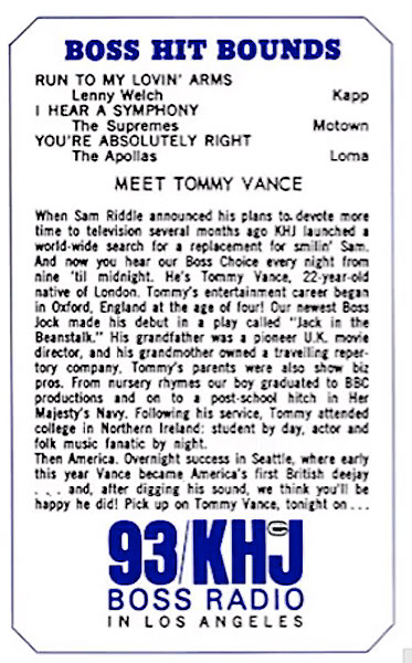 KOL in Seattle and KHJ Los Angeles – the stations where Tommy Vance