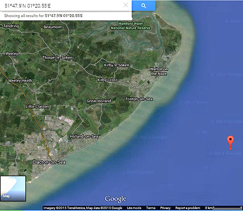 Making the 'Bubblegum' video However, sharp-eyed John Sales has spotted a video posted by the band about the making of the 'Bubblegum' promo. The band members were very interested in the history of the forts – both their role in WW11 and in offshore radio. They say the sense of isolation they experienced aboard Redsand felt appropriate for the 'Bubblegum' single. Drones are also becoming a regular news feature. Newsnight for April 12th had an item about Sealand (which as we now know is located off 'Fenton-on Sea' - see map in next story.) The Principality was visited again by Channel 4 in Hidden Britain by Drone, Sunday April 17, 2000, presented by Tony Robinson. Also on April 17th, the Mystery Jets guested on Channel 4's 'Sunday Brunch'. The interview starts circa 25 minutes in. Good luck to anyone who manages to find it in amongst the plethora of commercials! (Thanks to Pauline Miller, John Sales and Alan Field.) |