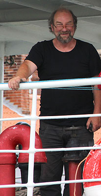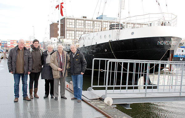 Skuesvisit to Amsterdam Keith wrote: "What a marvellous 24 hours. Thank you so much for making me most welcome. I was most excited to see the Norderney and climb up the steps to REM Island." (l to r) Hans, Jana, Ulrike, Keith and Martin. Photo taken by a passer-by