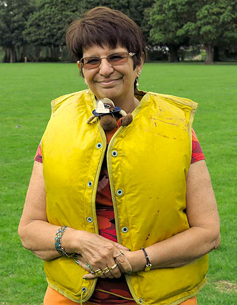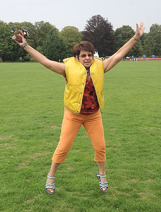 Amazing Caroline Artefact! The 'Buoy-O-Boy' Mary and Moosie were permitted to try on this Amazing Caroline Artefact, which has been languishing in George's garage. It made them jump for joy! (Jumping photo: Jon Myer.) |