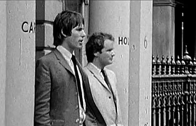 Lambert and Stamp Hans spotted that there is a very brief glimpse in the film trailer of Lambert and Stamp standing by the pillars outside Caroline House. (left) Let's hope we see more in the film. |