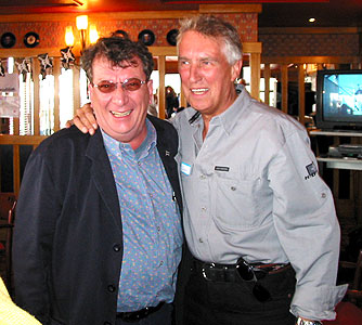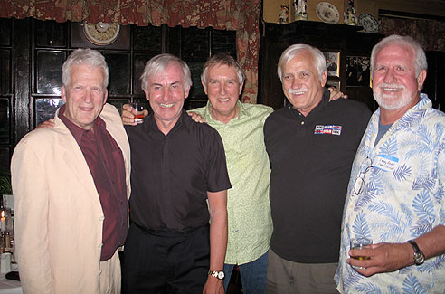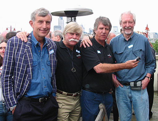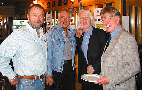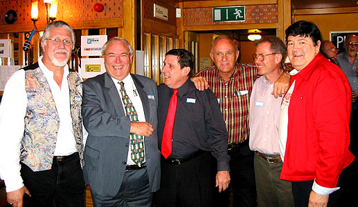 It was to be a day of firsts. Johnnie Walker and Robbie Dale encountered each other for the first time since 1968. Their wives Stella and Tiggy had never met. Ronan O'Rahilly was persuaded to attend his first offshore reunion, as was DLT. Graham Webb came all the way from Australia and nearly missed it altogether! Webby 'popped in' to Doggett's about 15 mins before the start, just to have a quick look around the venue. It's just as well he did, for he had misread his invite and somehow got the impression that the do was in the evening! Had he not decided on a whim to pop in to Doggett's, he would have arrived after the reunion had finished. Webby rushed straight back to his hotel to change and come back! Later, we presented him with a 'Far Out' Award for being the guest who had travelled the longest distance to be there.