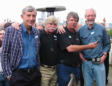 Big birthdays for Graeme and Graham! A celebration of Webby's 80th birthday took place on a boat (where else?) in Sydney Harbour on April 17th. * See story 'Spider's Family Favourites', below. |