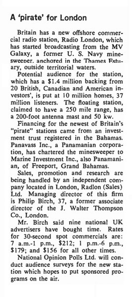 Our attention was drawn to a rather odd feature about how the 'censorship' of music in GB was overcome by means of pirate radio broadcasting from 'fishing boats'.