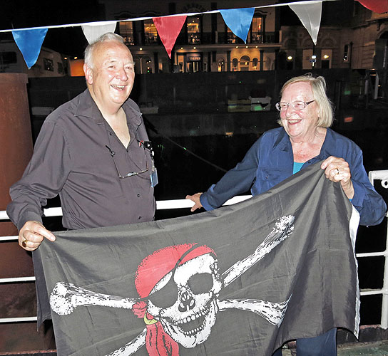John and Connie fly the Jolly Roger from the deck of LV18 during Radio Mi Amigo in Harwich |