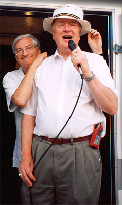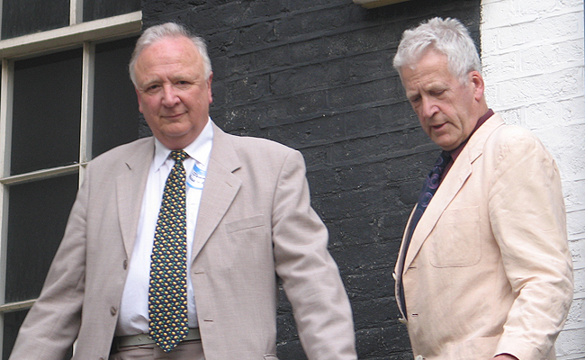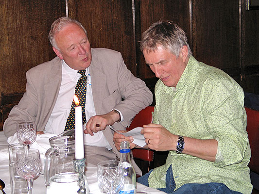John with former Laissez Faire shipmate, Johnnie Walker, at Grey Pierson's Radio England Reunion at The Red Lion, Mayfair, May 2006 |