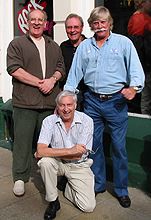 Twiggy's 'Grim News' for the Golden Guys Nobody old in this photo! Roger Day with Paul Burnett, Mary and Mike Ahern See Twiggy in the 'hairy' days of 1971 here. |