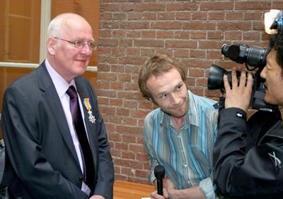 Queen Beatrix of the Netherlands has honoured our friend Hans Knot as a Knight of the Order of Oranje Nassau, as part of her Offical Birthday celebration. The Mayor of Groningen officiated at the award ceremony, which honoured Hans's forty years as a writer about radio, thirty as the final editor of Freewave Media Magazine, advisor to the Foundation for Media Communication and thirty-three years' service at Groningen University. The knighthood also recognised Hans's charity work in reading news bulletins for the visually handicapped.
