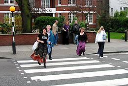 of people on the world's best-known zebra-crossing, and waved to the Abbey Road
