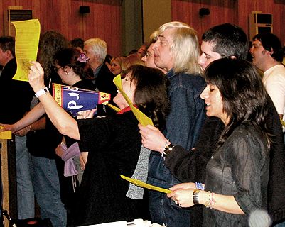 (where else) and ask 900 people if they'd like to come along and sing on the