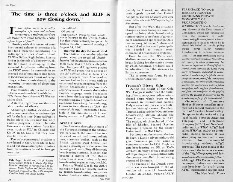Grey Pierson, the Executive Editor of Irving City Digest, has kindly allowed us to reproduce this feature by Conrad Westinghouse, from the June 1980 edition of the magazine,