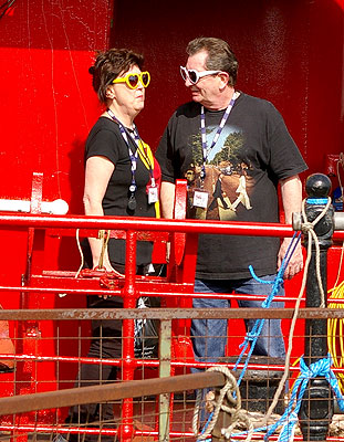 Coming ashore on the tender with Cardboard Shoes,  |