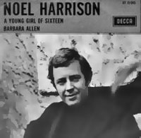 ![]() A Young Girl of Sixteen will be recalled by Radio London listeners as a Dave Dennis favourite. The Jaques Brel-style death-song, would invariably have appealed to the DD's own theatrical nature. ("A young girl of sixteen, child of springtime, still green, lying here by the road DEAD!") The UK B-side was Tomorrow It's My Turn, but in the Netherlands it was Noel Harrison's own arrangement of the folk song Barbara Allen. A Young Girl of Sixteen failed to chart in the Nationals, but had already made #51 in the US Hot Hundred, where the title was shortened to A Young Girl. In 1969, the single saw a reissue, backed with the Beatles' She's a Woman. This was around the time of Noel's biggest hit Windmills of Your Mind (the Oscar-winning theme from the film The Thomas Crown Affair) which found international success. At the height of Sixties spy-mania, Noel Harrison co-starred with Stefanie Powers in the Man from U.N.C.L.E. spin-off, The Girl from U.N.C.L.E.. In October 2013, he was living in Devon and still performing locally, when he died of a heart attack. Une enfant de seize ans, to give the song its original title, was co-written by French star, Charles Aznavour and Oscar Brown Jnr. Noel Harrison recorded the song in French for the Canadian market, where it made the Top Ten, but he had serious competition on the continent. Performer/composer Boudewijn de Groot recorded the song as Een meisje van zestien also on the Decca label. His version entered the Dutch charts on October 16, 1965, where it remained for 13 weeks. The real fun comes when you allow the Google automatic translator facility to battle with converting the lyrics into English. Aznavour could never have improved upon, "She had left her parents to follow a boy, Bohemian, who could sign and say: I love you, and without that becoming upsetting" or "He told her coils demanded space, so they grinds from place to place." The Untamed, the band championed by the Double D, also recorded the song. Although the Untamed's version was not released as a single, it is available on their CD 'Gimme Gimme'. |