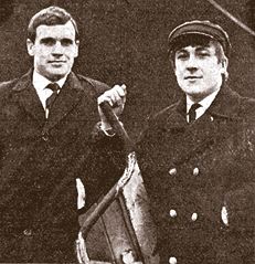 Dateline, Saturday, January 22nd, 1966 The Radio London Club Afternoon January 22nd 1966 was the date of my first visit (with friend and Knees Club Official #4, Lynn Belcher) to London's Marquee Club in Wardour Street, for the Radio London Club Afternoon. The main reasons I had not been before were that I had been too young and had nobody to accompany me. In January 66 I had just turned sixteen and was still at school. Not having any income beyond my pocket money, it was hard to find the train fare and the entry fee, even though I got reduced-price admission to the Marquee! Radio London Club cardholders were admitted for 3 shillings and six pence (current equivalent, 17.5 pence); non-members had to pay 1 shilling (5 pence) extra. A portion of the show, which featured the week's number one Fab Forty act, Pinkerton's Assorted Colours, was sponsored by Inecto hair products. I believe the band mimed to the single, rather than performing live. My diary does not record why I failed to take the opportunity to enrol the Pinkertons in the Knees Club, but as Flavour of the Month, they may well have had to rush off to another gig. The Inecto Show was recorded for broadcast on Radio London one week later, on January 29th. The afternoon was enhanced by meeting the Patron Saint of Knees and our Club President, Tony Windsor (member #11), who unfortunately, was too bashful to show us his patellae. Lynn and I got a lift back home to Wycombe with local duo Des & Dave. Dave Collier (#49), is left of the picture, Des Cox (#48), right. Is that a wheelbarrow between them? We have no idea. They were at the Marquee to promote their single Tumblin' Down. An undated recording exists of Tumblin' Down being announced as a Big L climber, but for which week and for how many weeks, is unknown. Des's Website. |