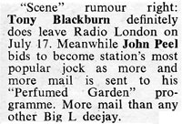 Tony Blackburn announced to his listeners that he was to leave Radio London, but on July 15th, not the 17th, as suggested in the clip on the left.