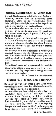 From the 'Radio London Fab 40' heading, we have to assume that a chart was published on another page of this edition. From the artists in the accompanying photo-feature it appears to be either from July 2nd or July 9th. Chris Farlowe, Jackie Trent and John Walker were all in the Fab Forties for both of these dates. The Who's Who of the Big L DJs prior to the station's imminent demise, carries an ad for the Philip 'Branch' Agency. A most unfortunate typo, as Radlon's MD Philip Birch had undoubtedly paid good rates for it, probably for the entire promotional feature.