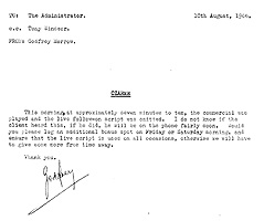Advertisement problems from 1966. In these memos, Godfrey Morrow is trying to establish from administrator Richard Swainson why advertisements for a product called Czarme have not been broadcast as the client wanted. The commercial was to be played from a cart, but was supposed to have a live read follow-up. As this had failed to happen all week, it appears the script may have gone missing between Curzon Street and the Galaxy. Whatever the problem, Swainson has marked the second memo as 'dealt with'.